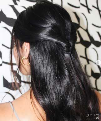 مدل موهای بلند همیشه نیازی نیست از بالا بسته شوند، موهای خودرا از فرق به سمت پایین تقسیم کنید و در بالای سر به صورت دماسبی ببندید.