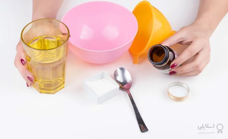 4- یک چهارم قاشق چایخوری روغن ویتامین E را اضافه کنید