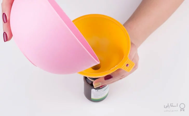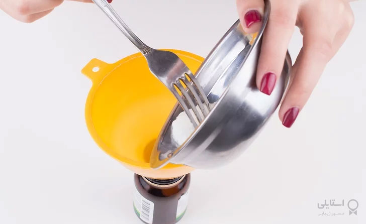 7- برای انتقال سرم مرطوب کننده به ظرف شیشهای از قیف استفاده کنید