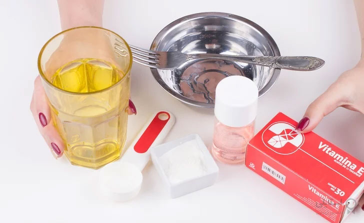 4- یک چهارم قاشق چایخوری روغن ویتامین E را اضافه کنید