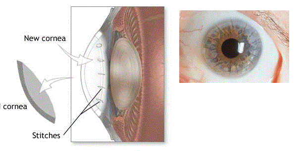 در بسیاری از موارد پیوند، پس از جراحی جهت اصلاح عیب انکساری (دوربینی، نزدیک بینی، آستیگماتیسم) عینک یا لنز تماسی برای بیمار تجویز خواهد شد که امروزه میتوان از روش لیزیک به عنوان جایگزین استفاده کرد.