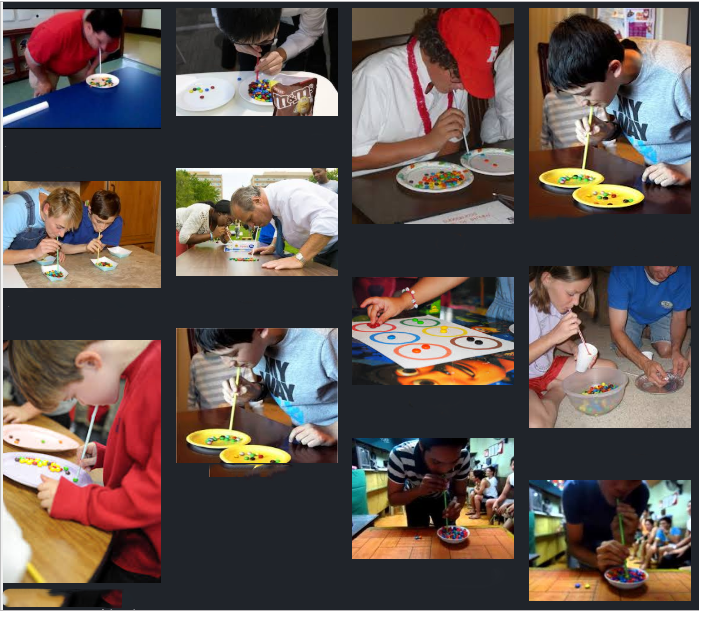 در مرحله بعد یک نی در دهان خود قرار داده، نی را به سمت کاغذ خورده ها ببرید و یکی از آنها را با مکیدن هوای نی، به نوک نی بچسبانید. نی را بمکید، بطوری که کاغذ به نی چسبیده و از نوک نی جدا نشود. همین طور که هوا را به سمت داخل می کشید، کاغذی که به نوک نی چسبیده را از داخل ظرف به داخل ظرفی دیگر ببرید و بالای ظرف دوم آن را رها کنید.
