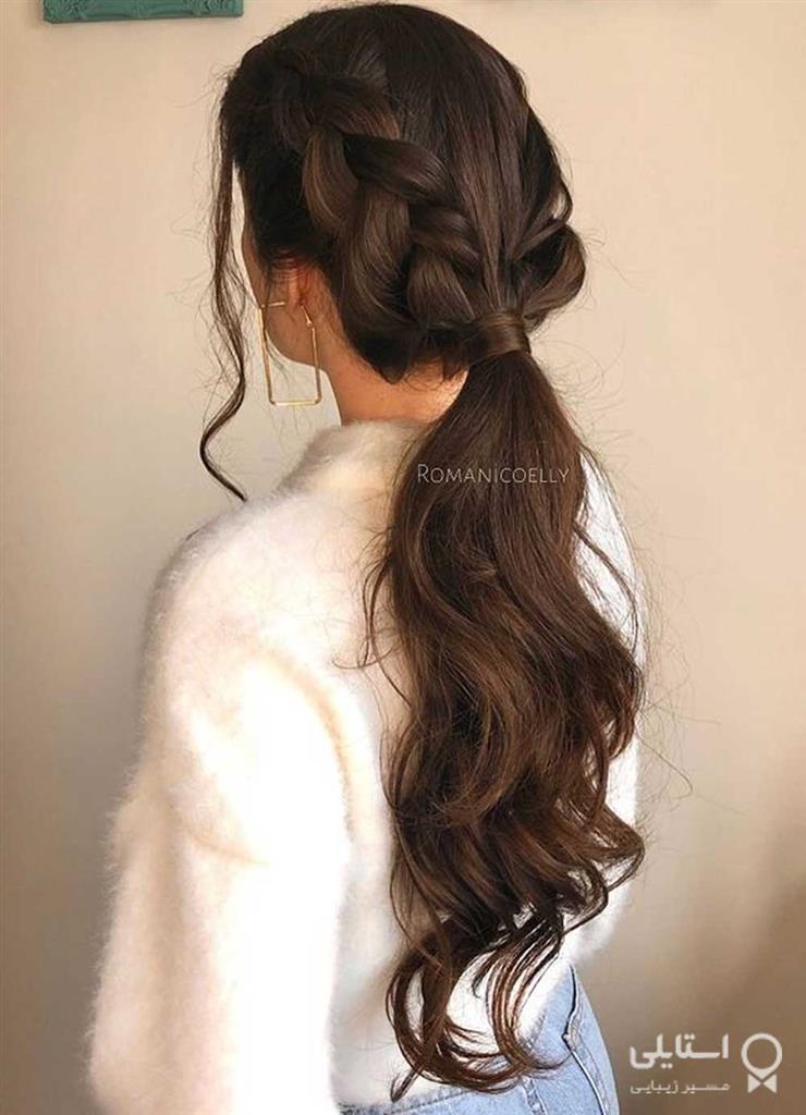 اگر بهدنبال یک سبک بافته شده هستید که بتوانید با آن در خانه بتازید این ظاهر گره خورده و پونی را بررسی کنید. طرح مو شامل دو نوار کناری شل بافته شده است که از پشت جمع شدهاند.