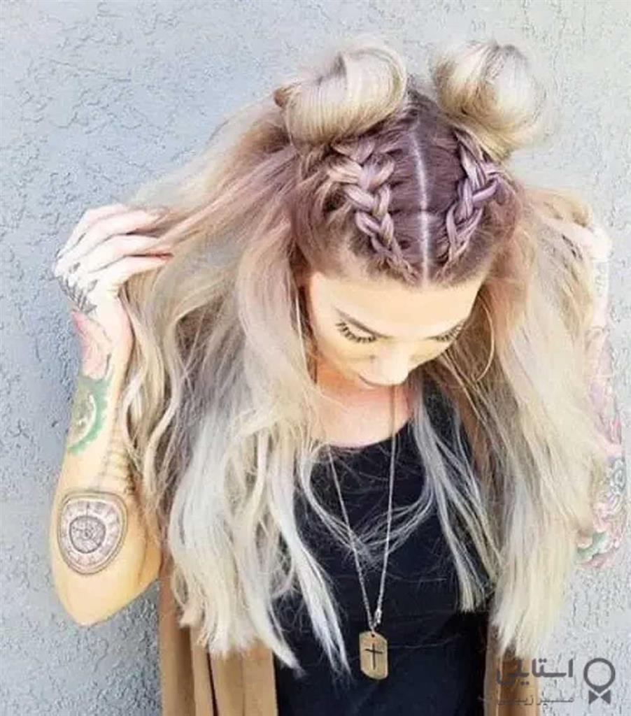 دو نوار بافتنی به سبک فرانسوی که به دو دسته ختم میشوند. در حالی که نوارهای بافته شده باید نزدیک سر بغل شوند و مرتب بهنظر برسند. ظاهری نا مرتب و مخلوط با مقداری حجم و موج برای موهای شل در هر فصلی کار میکند.