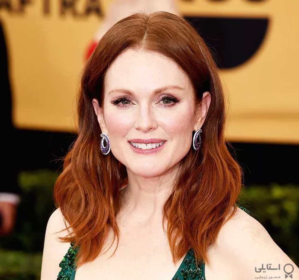 جولیانمور به دلیل امضای موهای عمیق مسی، بهویژه چگونگی تکمیل چشمان سبزیشمی وی معروف است